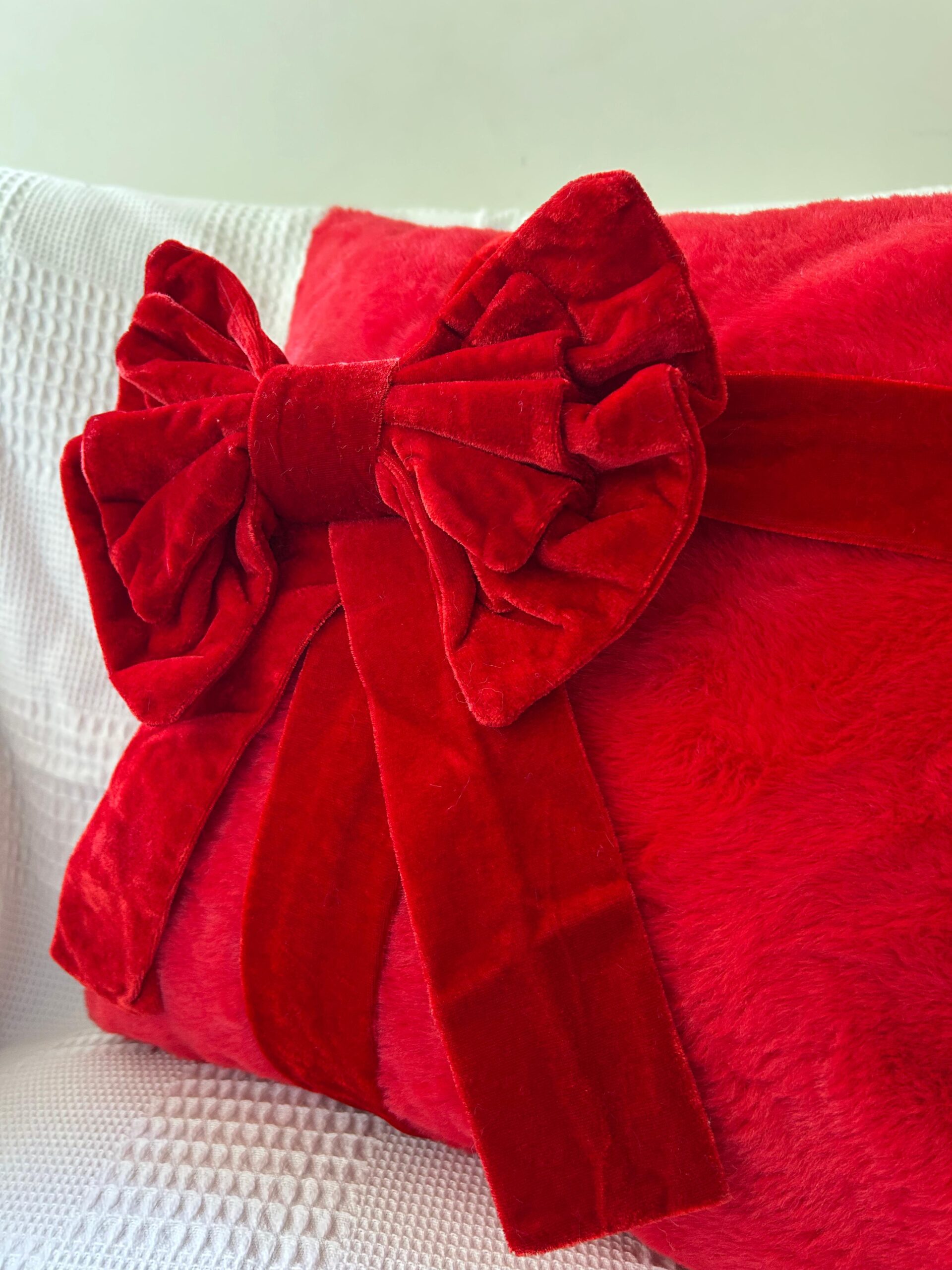 Fundas de cojines navideñas con diseño 3D de lazo elegante