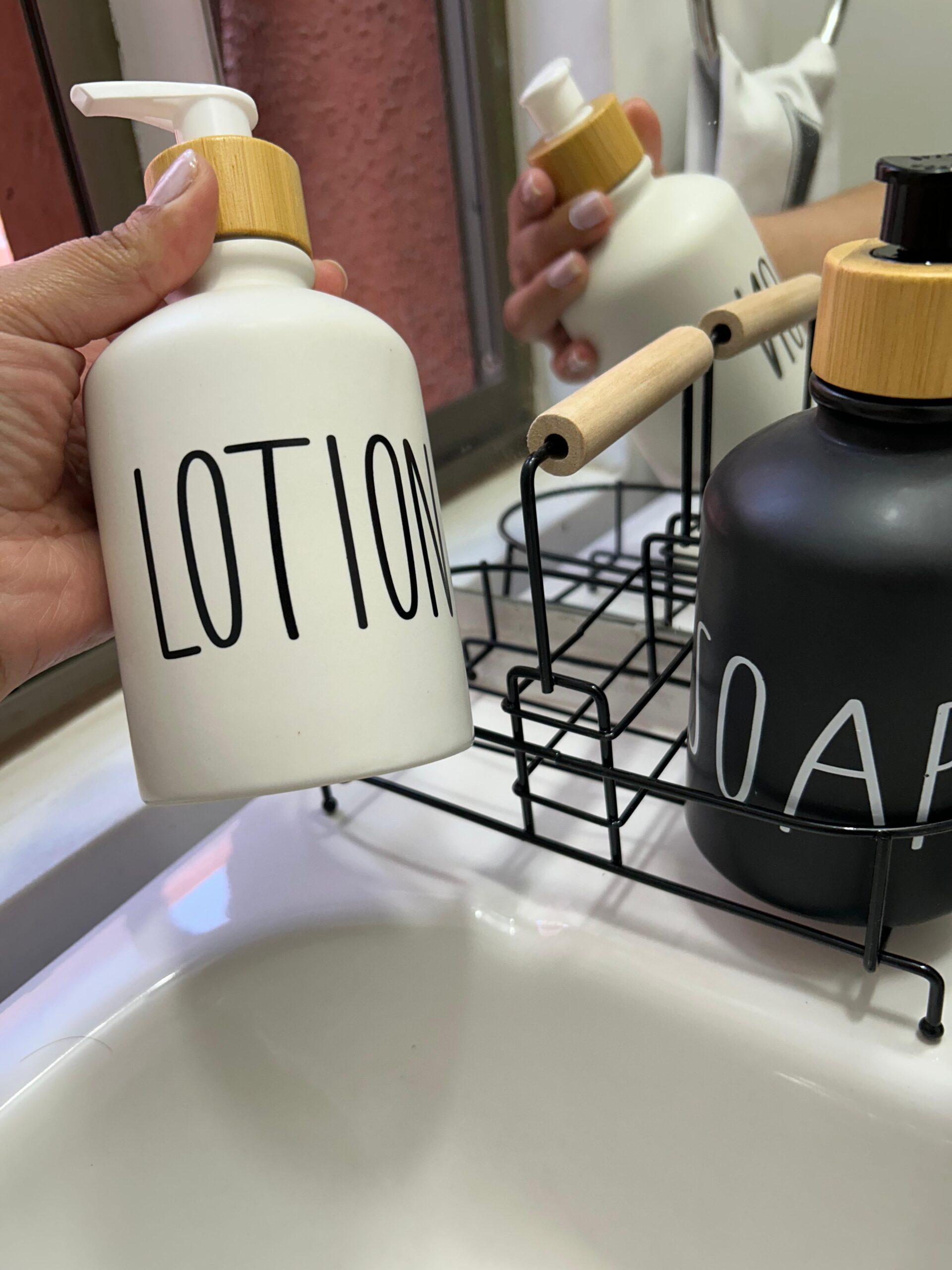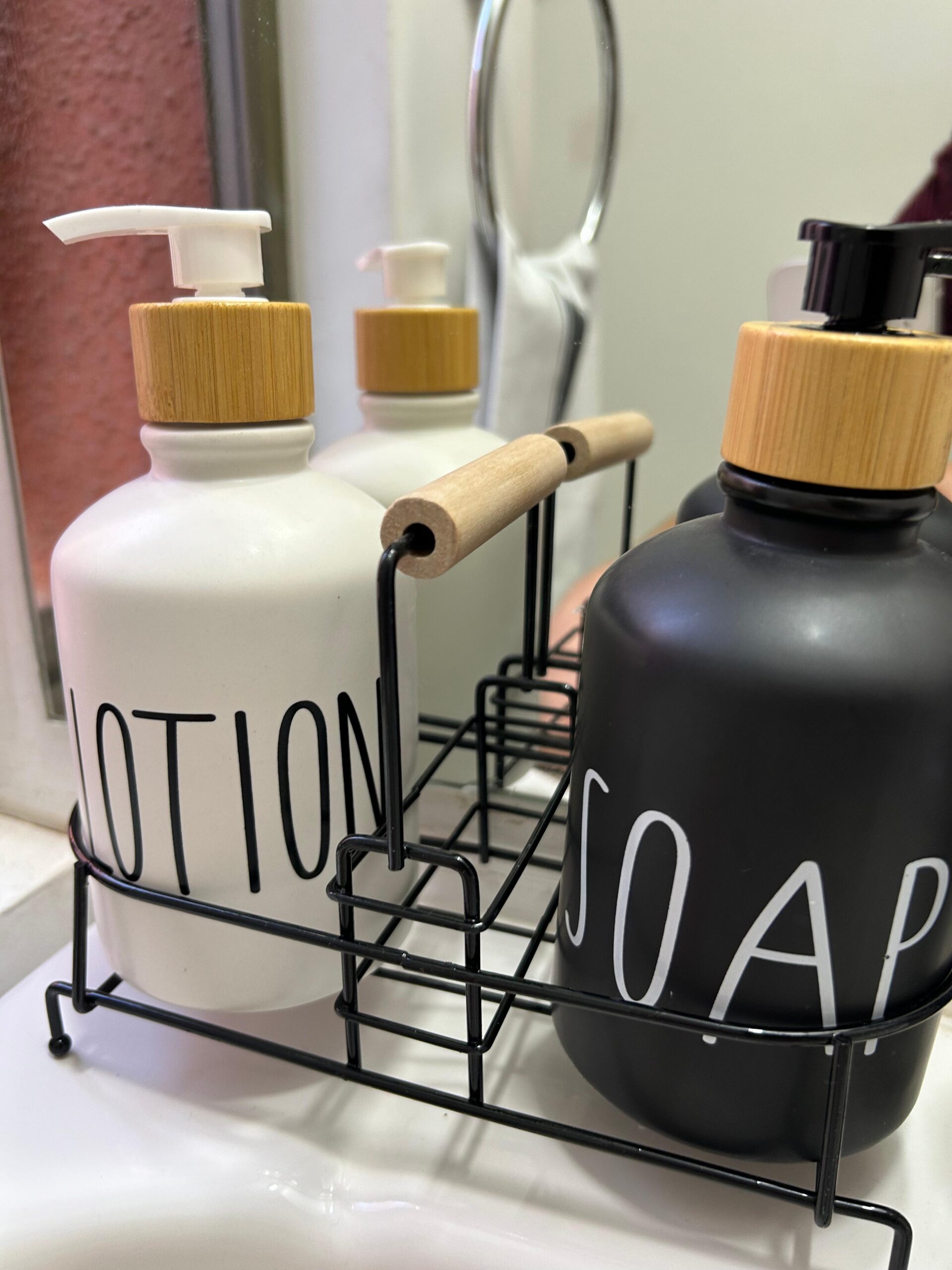 •⁠ ⁠Incluye 2 dispensadores de vidrio y bandeja de bambu